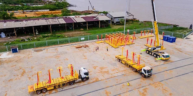 Met de aankomst van de eerste subsea-apparatuur in Suriname komt de uitvoering van het GranMorgu offshore olieproject in een volgende fase. Eind maart zijn onderdelen van het zogeheten Long BaseLine (LBL) positioneringssysteem afgeleverd in de Dr. Jules Sedney Haven in Paramaribo.